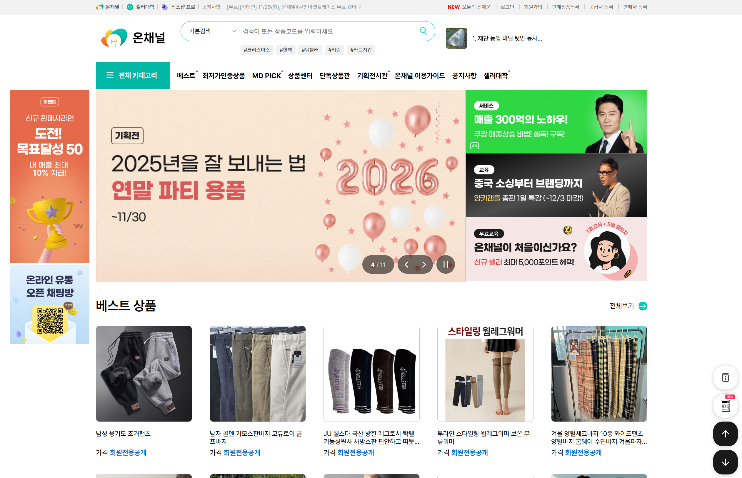 온채널은 공급사와 판매사 간의 원활한 거래를 지원하는 온라인 도매 중개 플랫폼입니다.