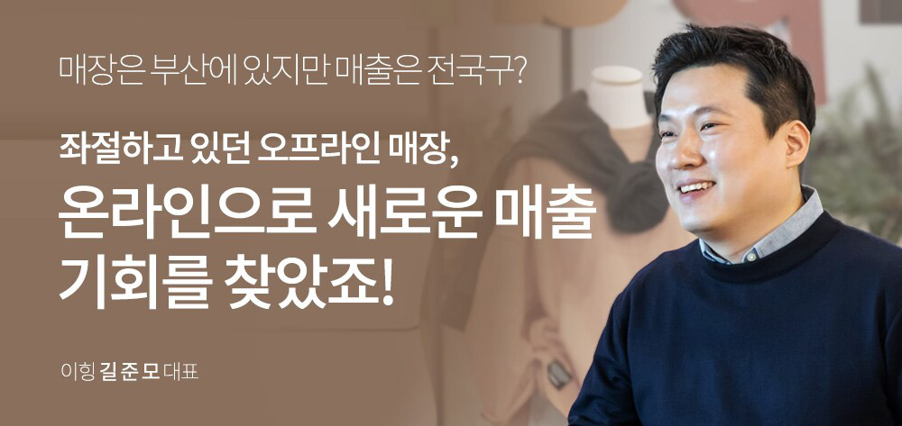 길준모 대표는 오프라인 매장을 운영하는 아내가 비싼 임대료와 인건비, 재고문제 등으로 어려움을 겪는 모습을 보고 문제점을 해결하기 위해 온라인 판매에 뛰어들게 되었다. 오프라인 매장이 갖고 있는 장점도 분명 있었지만, 가게가 부산에 위치한 탓에 그만큼 한계도 있었다. 더 많은 타깃들에게 이힝의 옷을 더 많이 알리고 싶다는 생각이 들게 된 것. 여기까지 생각이 미친 길준모 대표는 다니던 조선소를 그만두고 본격적으로 오픈마켓 입점을 모색했고, 쿠팡 마켓플레이스에는 2018년에 처음 입점하게 되었다.