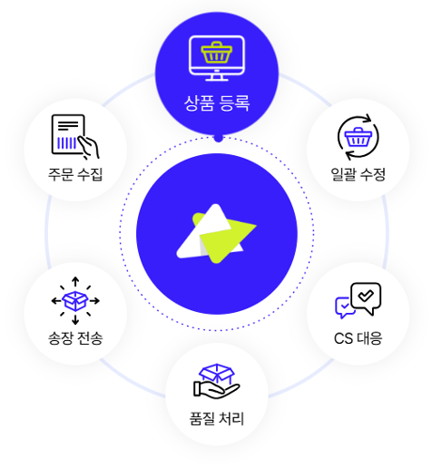 상품 등록, 주문 수집, CS 관리, 송장전송 등